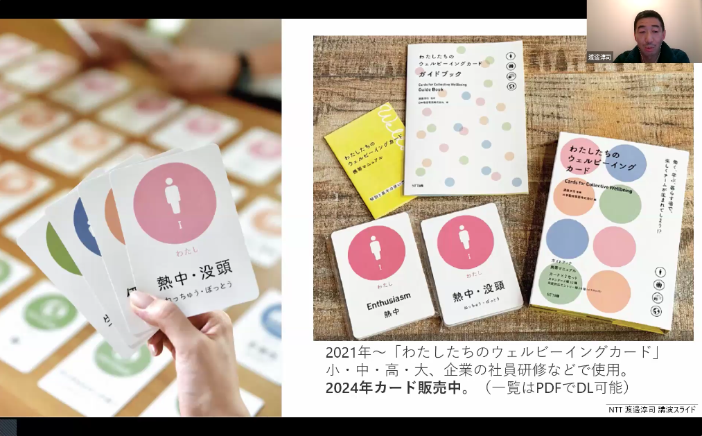 渡邊 例えば、文部科学省の「第4期 教育振興基本計画」の中にはウェルビーイングが大きく入っています。ただやっぱり理念と実践にはまだ距離があるんですね。その間をつなぐものがまだそんなに多くないので、カードを使ったりしたいと、お声がけいただいたりしています。