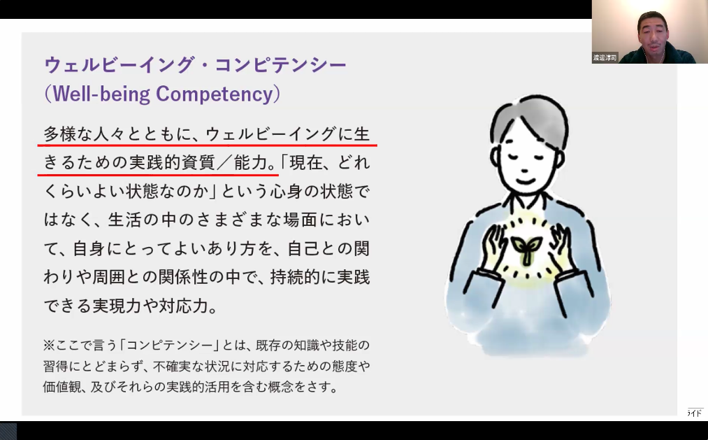 渡邊 実は、今、ウェルビーイングの国際標準があるんです。ISO25554:2024と言います。それを見ると、ウェルビーイング自体は定義しません、って書いてある。